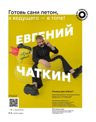 Привет! Я Евгений Чаткин! И вот уже много лет я делаю людей счастливее как ведущий, сценарист и организатор мероприятий! Если тебе нужен юмор, интеллигентность и неутомим...
