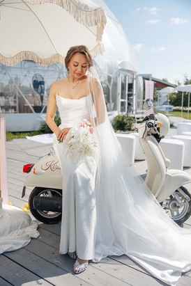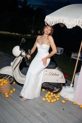 Каждая деталь — от арки, стилизованной под романтичный образ простыни, сушащейся на солнце, до букета невесты — говорила об их общей любви к эстетике Италии. Эстетике не вычурной, но эффектной, полной жизни и тепла.