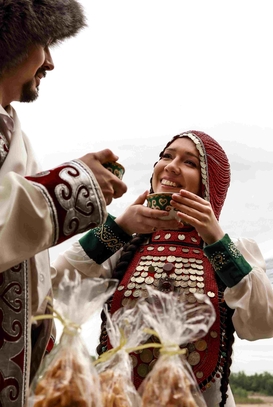 Путь к воде (Һыу юлы): Этот обряд символизирует переход невесты из родительского дома в новую жизнь. В сопровождении подруг невеста отправляется к водоему, что становится прекрасной возможностью для демонстрации традиционных национальных костюмов и сохранения обычаев.